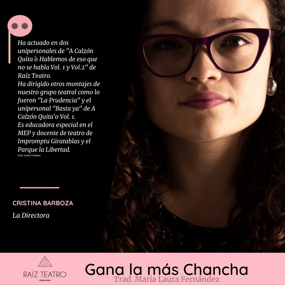 ¿Qué puede esperar el público de Raíz Teatro al ver Gana la más chancha?No lo sé, realmente nunca como directora estoy segura de que es lo que el montaje va a producir en el espectador. Esa es la gran magia de nuestro quehacer.