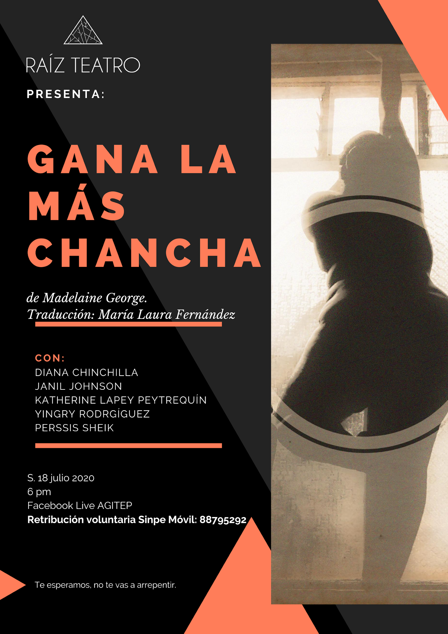 Raíz Teatro presentó por primera vez la versión traducida por María Laura Fernández, de la obra Gana la más Chancha, dentro del espacio de lecturas dramatizadas por AGITEP el sábado 18 de julio, en la cual se narra la historia de un grupo de mujeres que se encuentran en una clínica de cirugía plástica para cambiar varias partes de su cuerpo. En esta ocasión tuve la oportunidad de ser parte del equipo en las áreas de sonido y acotaciones.